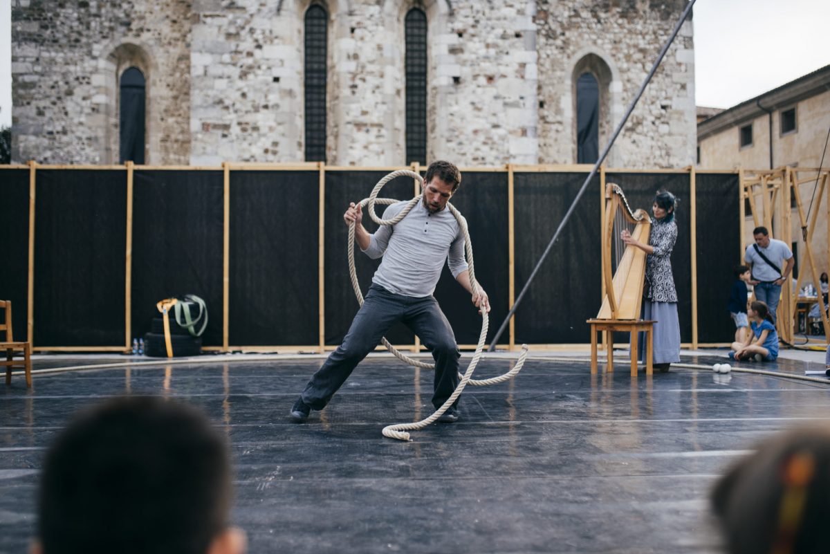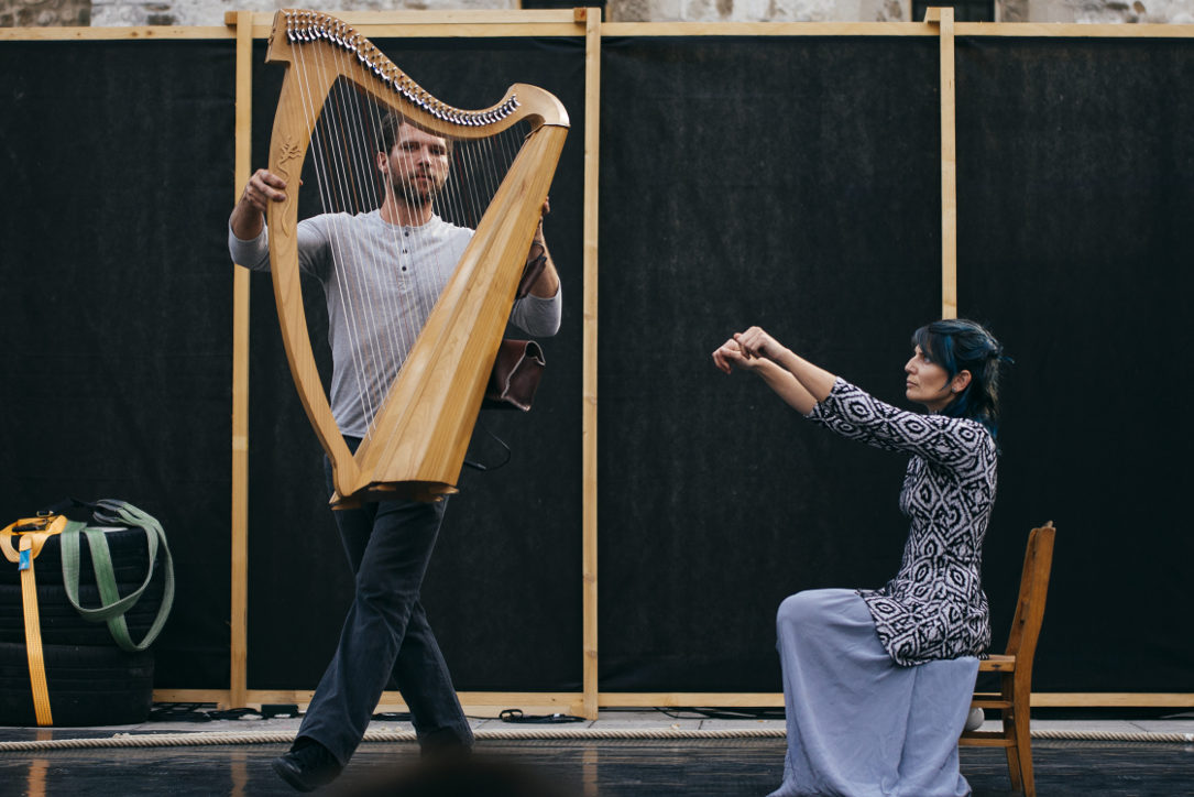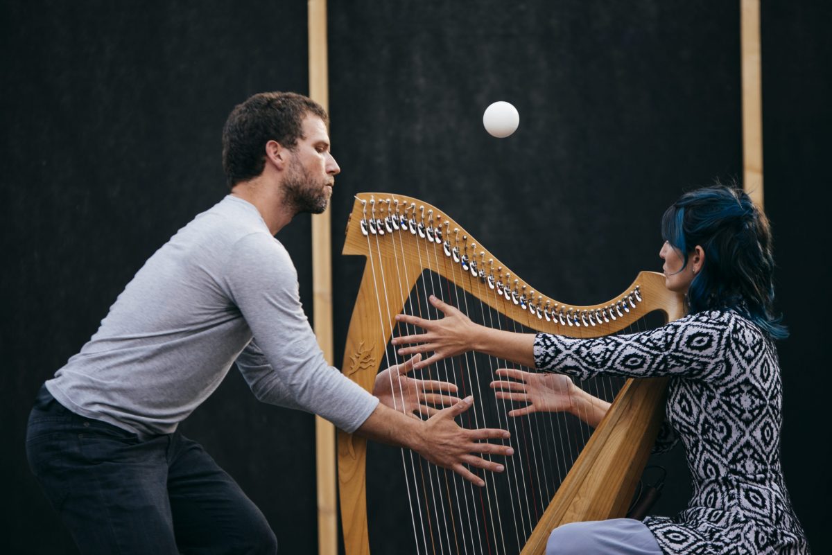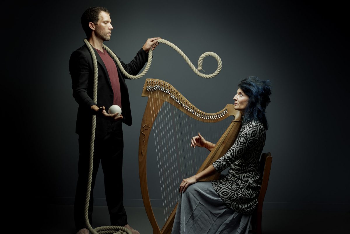 Déborah Colucci compose pour la harpe un répertoire moderne et virtuose. Elle improvise et explore avec son instrument des sonorités riches et variées. Alexis Rouvre est un artiste physique, jongleur de balles et surtout manipulateur de cordes. Il développe une jonglerie en mouvement, un geste instinctif et élégant.